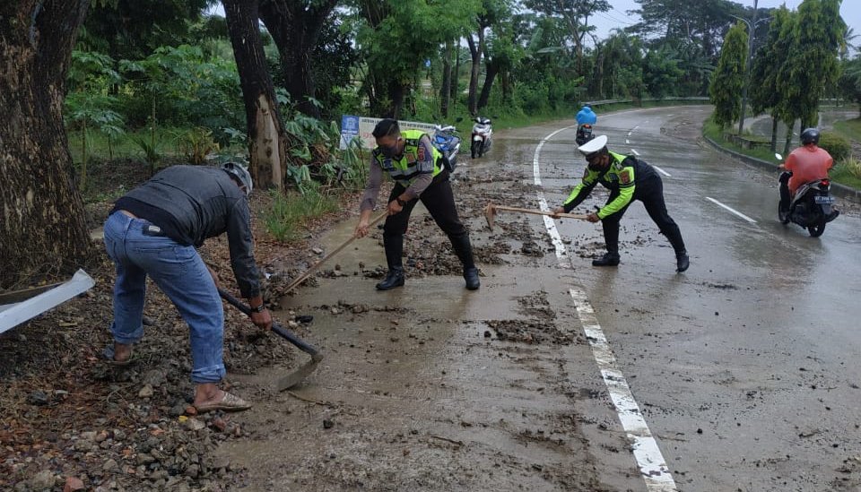 “Selain patroli kami juga mengatur jalan, karena ada jalan yang berlubang. Personel bersama-sama membersihkan bebatuan berserakan dijalan,” kata Kasat Lantas.