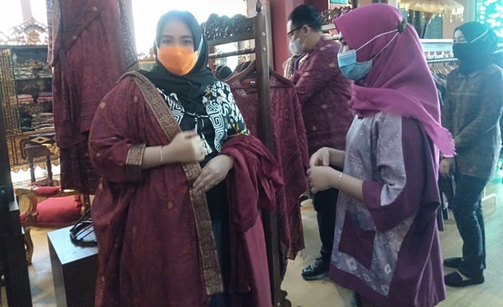 Palembang, Sriwijaya Media-Ketua Dekranasda Kota Pangkal Pinang Monica Haprinda Maulan Aklil berkunjung ke Kriya Sriwijaya, Jalan Kampus Palembang, Kamis (26/11/2020).