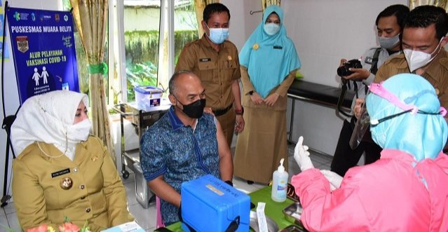 Musi Rawas, Sriwijaya Media -Bertempat di Puskesmas Muara Beliti, Bupati Musi Rawas (Mura) Hj Ratna Machmud mengapresiasi dan berterima kasih atas kinerja Tenaga Kesehatan (Nakes) Kabupaten Mura yang telah memberikan kontribusi nyata selama 24 jam dalam upaya penanganan Covid-19, termasuk saat menemani Ketua TP PKK Kabupaten Mura melaksanakan Vaksin Covid 19 Tahap II, Selasa (30/03/2021).