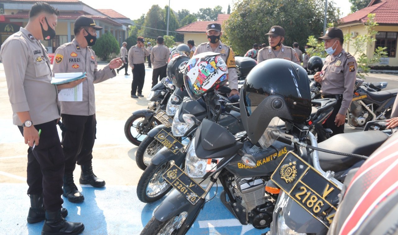 Musi Rawas, Sriwijaya Media -Mewakili Kapolres Musi Rawas (Mura) AKBP Efrannedy, Wakapolres Mura Kompol Ali Sadikin menggelar apel pemeriksaan kendaraan sepeda motor (ranmor) Bhabinkamtibmas yang bertugas diwilayah hukum Polres Mura, di halaman belakang Mapolres Mura, Pusat Perkantoran Agropolitan Center Pemkab Mura, Kamis (10/6/2021) pagi.
