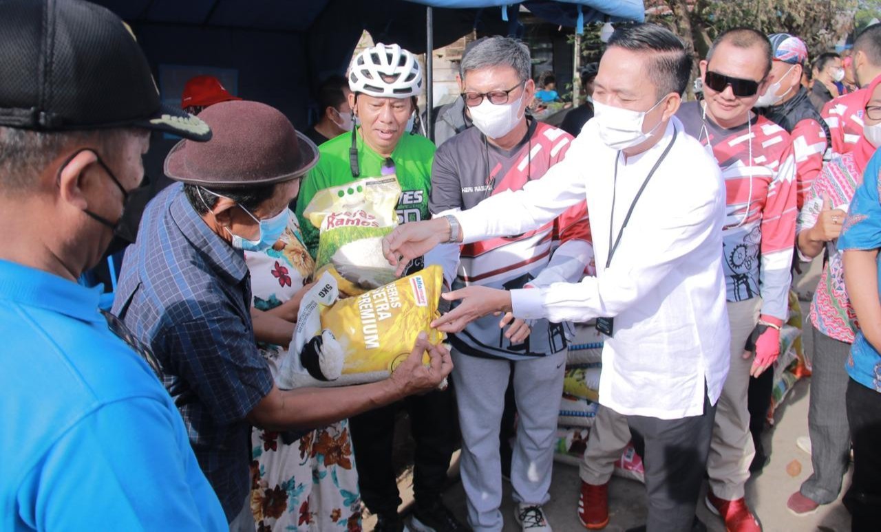 Sekda Ratu Dewa bersama ASN Gowes Community turun langsung mendistribusikan bantuan setengah ton beras ke korban kebakaran tersebut, Jumat (14/1/2022).