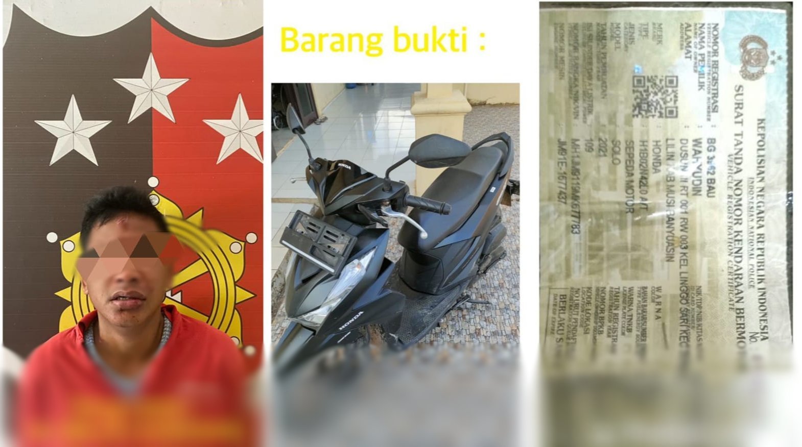 Selain mengamankan pelaku, petugas juga menyita barang bukti berupa satu unit sepeda motor Honda Beat warna hitam.