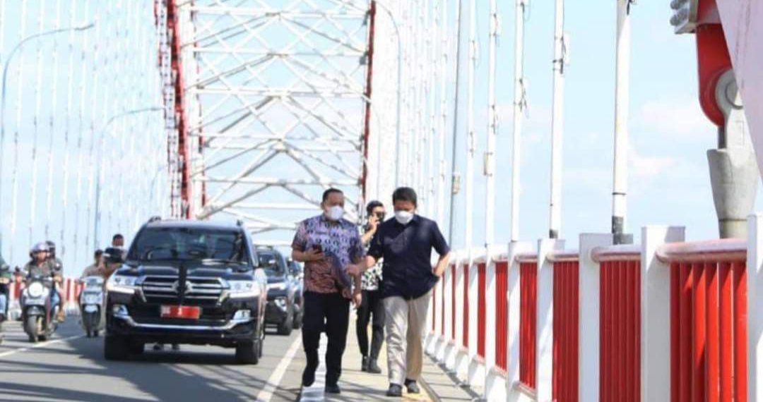 Palembang, Sriwijaya Media – Gubernur Sumsel H Herman Deru didampingi Pelaksana Harian (Plh) Kepala Dinas Pekerjaan Umum Bina Marga Dan Tata Ruang (DPUBM & TR) Sumsel Darma Buddy meninjau langsung jalan dan jembatan Musi VI Palembang, Jum’at (8/4/2022).