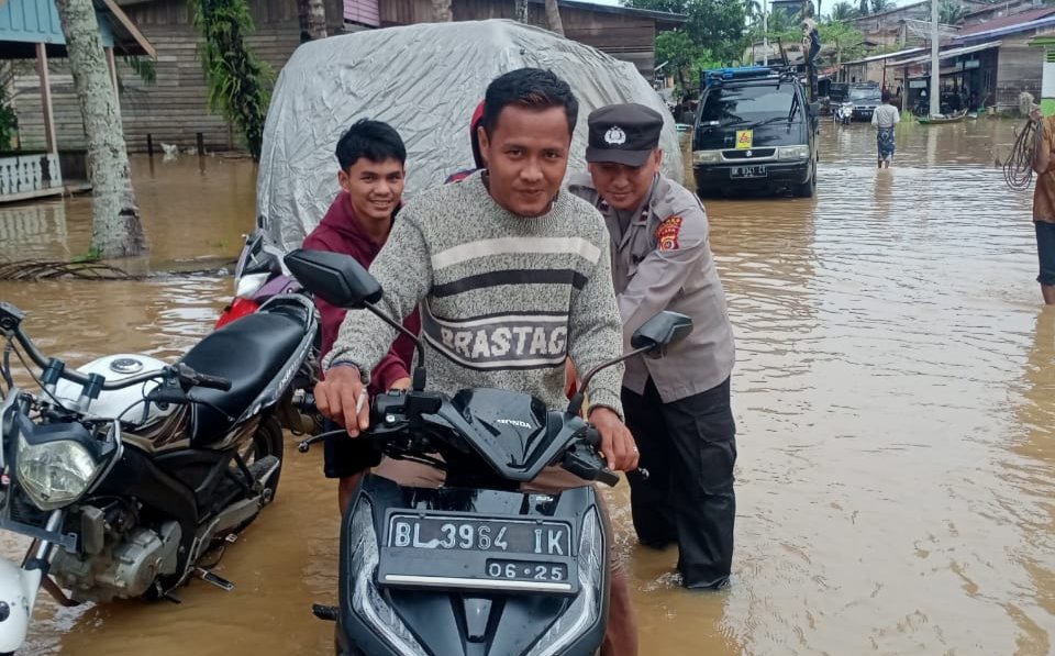 “Kami mendatangi lokasi banjir untuk membantu warga dengan mengevakuasi baik jiwa maupun harta benda, serta melakukan pengaturan lalu lintas dan berkordinasi dengan Kepala Desa (kades) maupun anggota BPBD Sultan Daulat,” ucap Kapolsek.