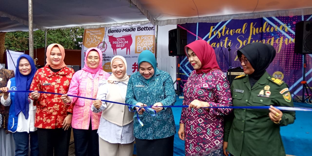 Ketua TP PKK Kabupaten Lahat Lidyawati Cik Ujang, S.Hut., MM., menjadi pembeli pertama dalam ajang Festival Kuliner Seganti Setungguan.