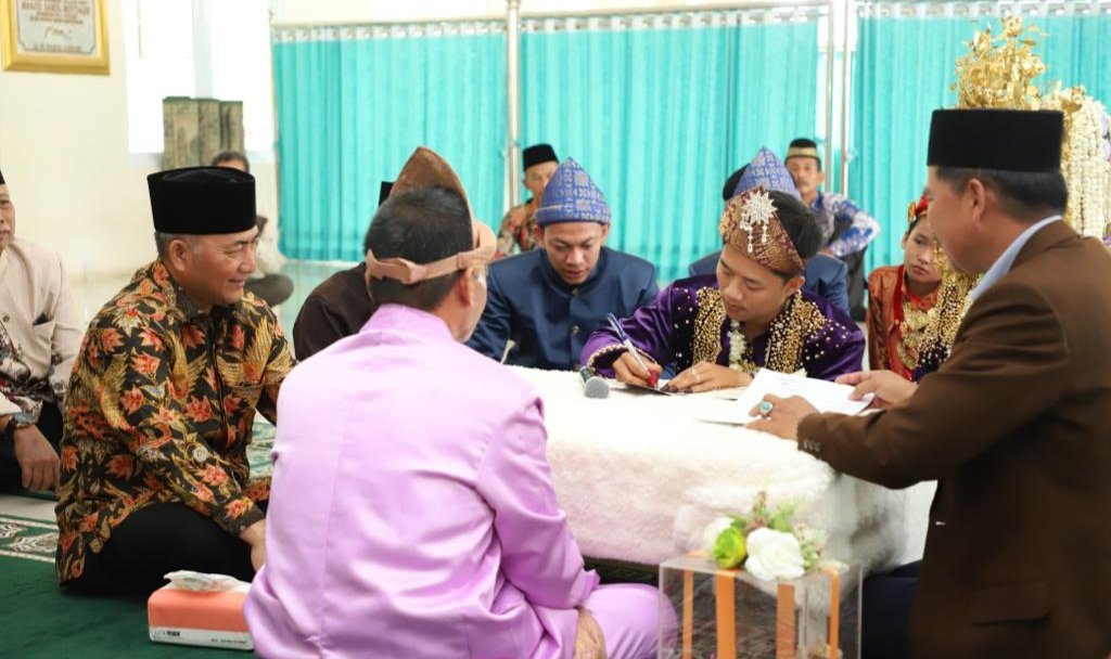 Pantauan di lokasi, tampak Pj Bupati Apriyadi Mahmud turut menjadi saksi akad nikah Zul dan Intan.