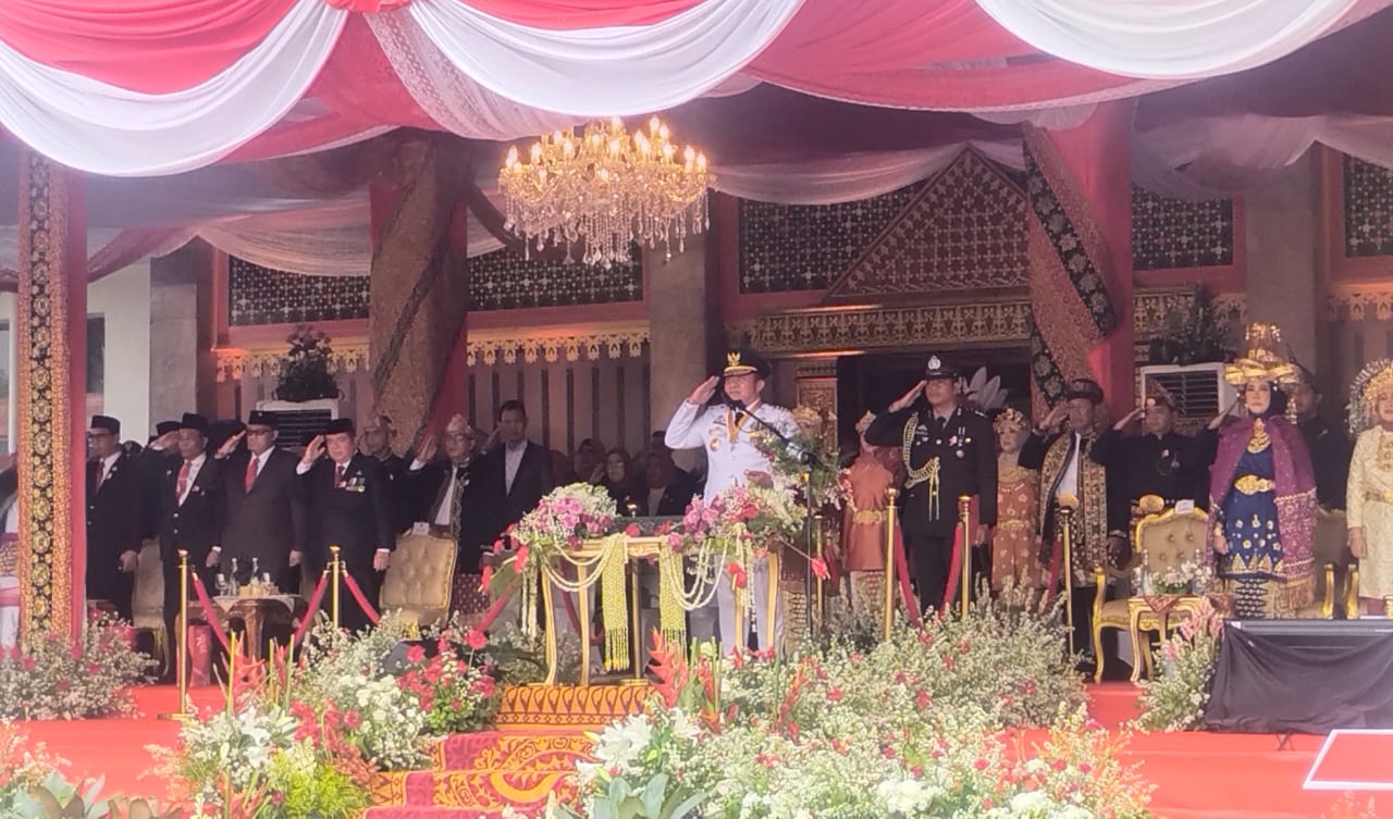 Gubernur Sumsel H Herman Deru saat menjadi Irup dalam upacara Peringatan HUT Kemerdekaan RI ke 78, di Griya Agung berlangsung semarak, Kamis (17/8/2023)/sriwijayamedia.com-ton