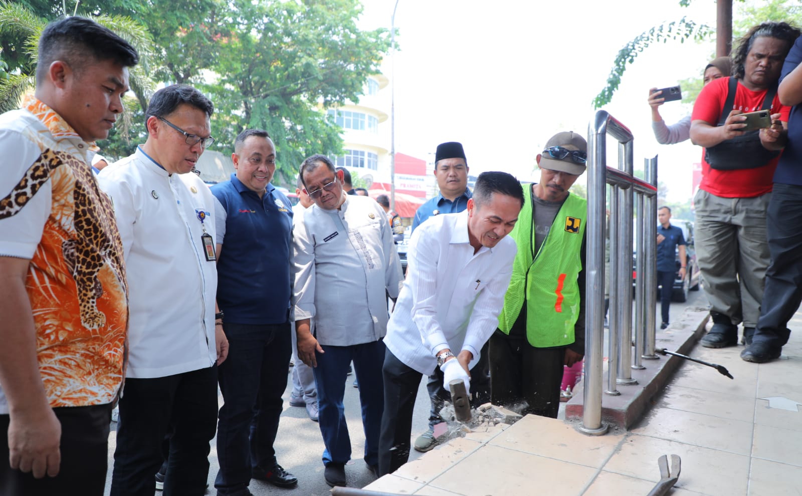 Proses penghapusan halte dilakukan secara simbolis oleh Ratu Dewa dengan memecahkan lantai halte dengan palu dan memotong besi dengan mesin las, di Halte UBD B, Jakan Jenderal Ahmad Yani, pada Jum’at (6/10/2023).