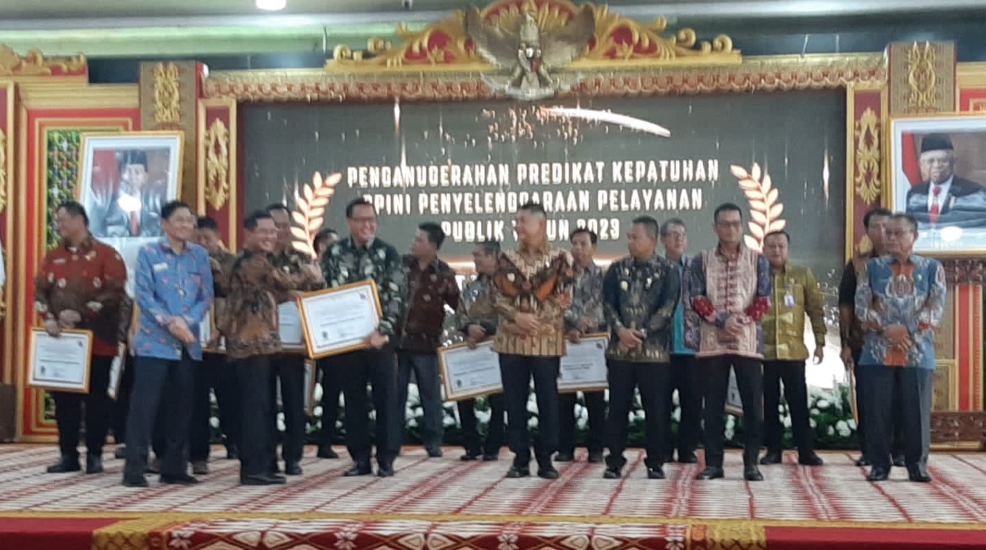 Penghargaan ini berdasarkan SK Ketua Ombudsman RI No 418/2023 tentang hasil penilaian Kepatuhan Penyelenggaraan Pelayanan publik tahun 2023.