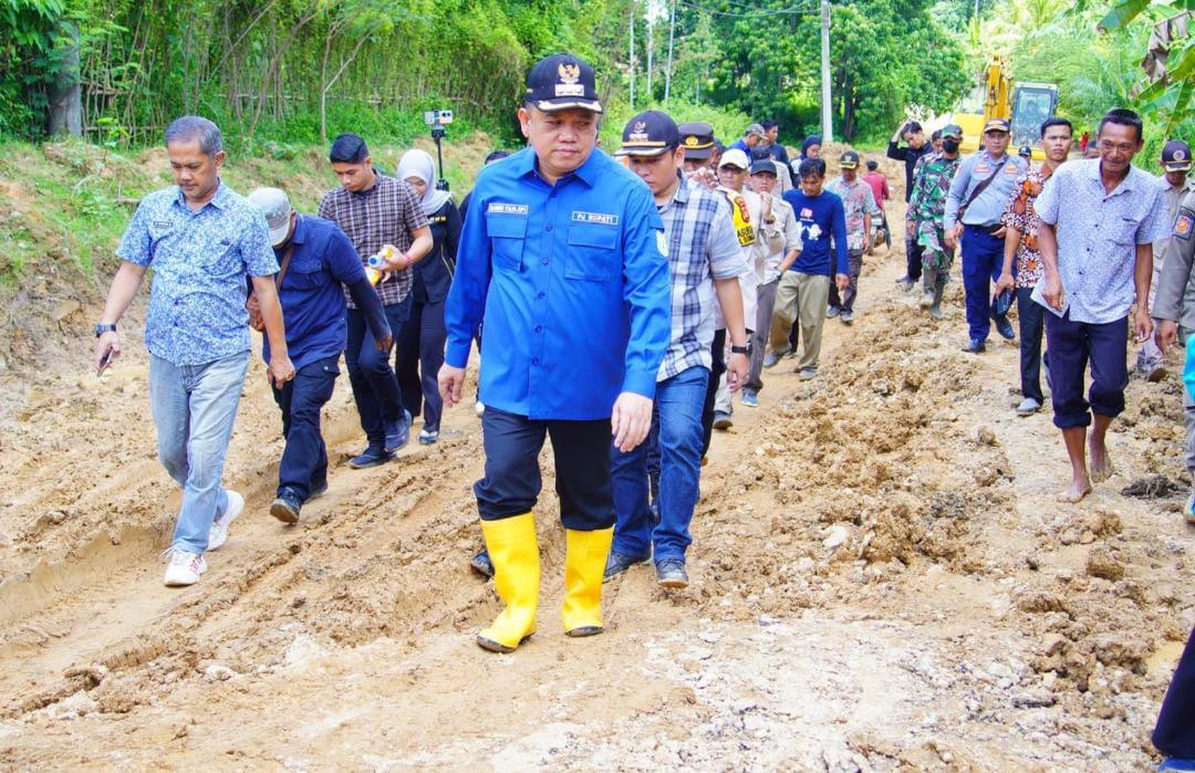 Saat tiba di lokasi, Pj Bupati Muba Sandi Fahlepi terlihat sangat antusias berdialog dengan warga sekitar dan meninjau langsung kondisi jalan.