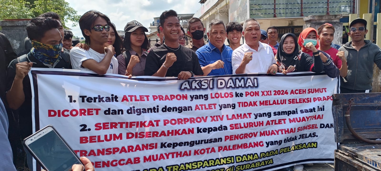 “Kami juga meminta KONI Sumsel mencoret atlet Muaythai yang tidak mengikuti seleksi pra PON dari daftar atlet PON Aceh-Medan 2024,” kata Koordinator Aksi Dheo Aditya.