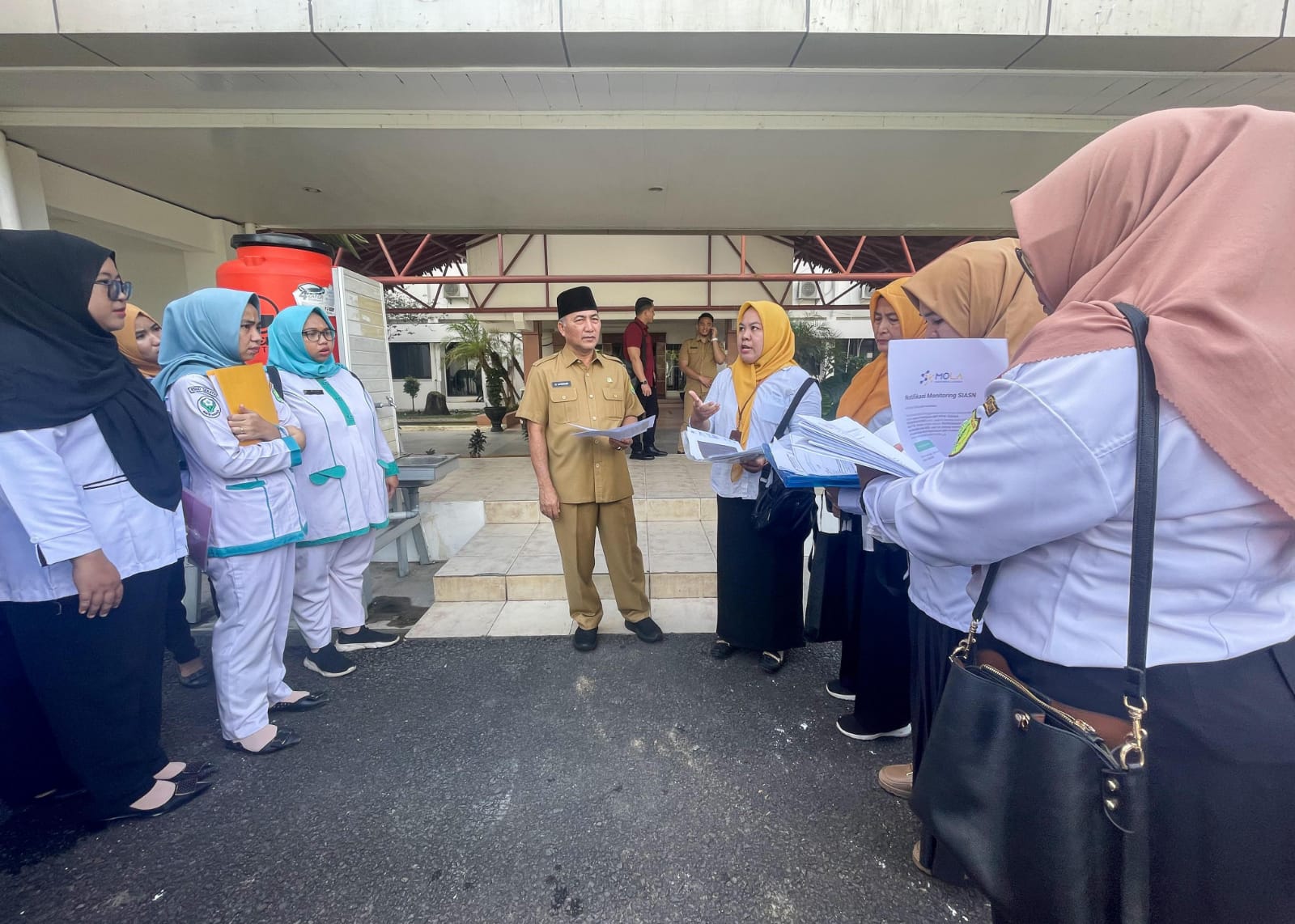 Kedatangan puluhan bidan dengan haru tersebut diterima langsung Sekda Muba Apriyadi Mahmud.