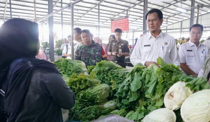 Plt Asisten Perekonomian dan Pembangunan Setda Muara Enim Ir H Ahmad Yani Heriyanto, MM., memantau operasi pasar murah, di Pasar Inpres Muara Enim, Rabu (22/5/2024)/sriwijayamedia.com-kiki