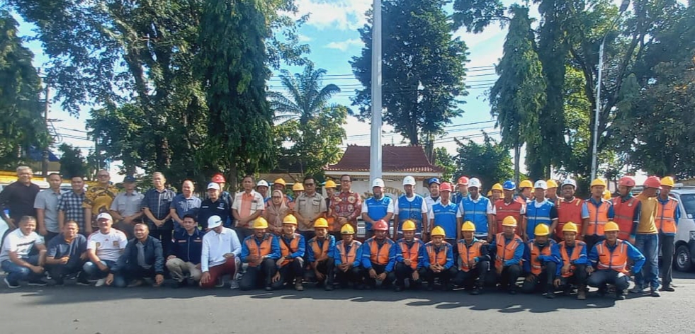 Sriwijayamedia.com- Pj Bupati Lahat Muhammad Farid, S.STP., M.Si., bertindak selaku Pembina Upacara melepas Goes’r Road to Zero Gangguan PLN, berlangsung di halaman Kantor Pemkab Lahat, Sabtu (22/6/2024).