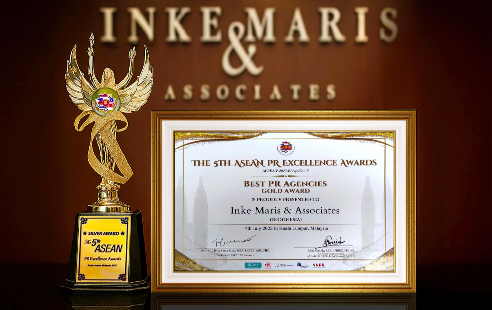 Sriwijayamedia.com- Inke Maris & Associates (IMA), perusahaan konsultan komunikasi terkemuka asal Indonesia, dengan bangga mengumumkan pencapaian terbarunya sebagai Best PR Agency di ASEAN dalam ajang bergengsi ASEAN PR Excellence Awards ke-5, yang berlangsung bertepatan dengan Konferensi Humas Internasional di Kuala Lumpur, belum lama ini.