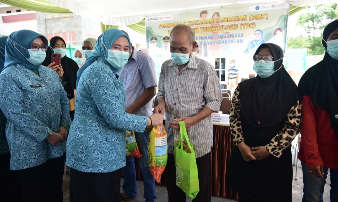 Sriwijayamedia.com- Bekerja sama dengan Dinas Kesehatan (Dinkes) Kota Palembang, Ketua Tim Penggerak (TP) PKK Kota Palembang Dewi Sastrani Ratu Dewa membagikan makanan tambahan pada pasien Tuberculosis (TB), di Puskesmas Sematang Borang, Jum’at (31/10/2025).