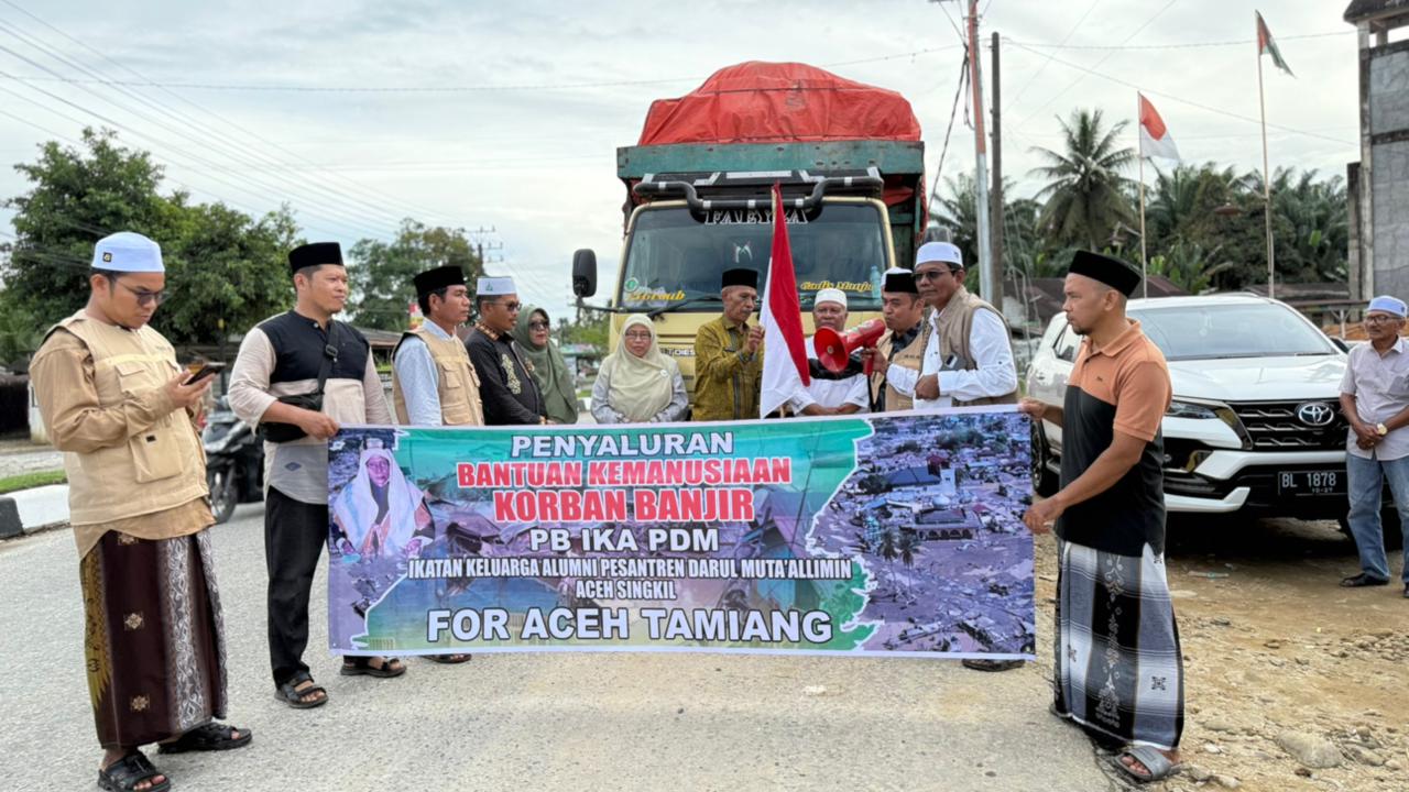 Keberangkatan tiga mobil bantuan kemanusiaan korban banjir dilepas langsung oleh Wakil Bupati (Wabup) Aceh Singkil Hamzah Sulaiman, SH., Ketua Umum (Ketum) PB IKA PDM Ustad Umma Abidin, Dewan Syura IKA PDM Abu H Khazali dan tokoh agama lainnya.