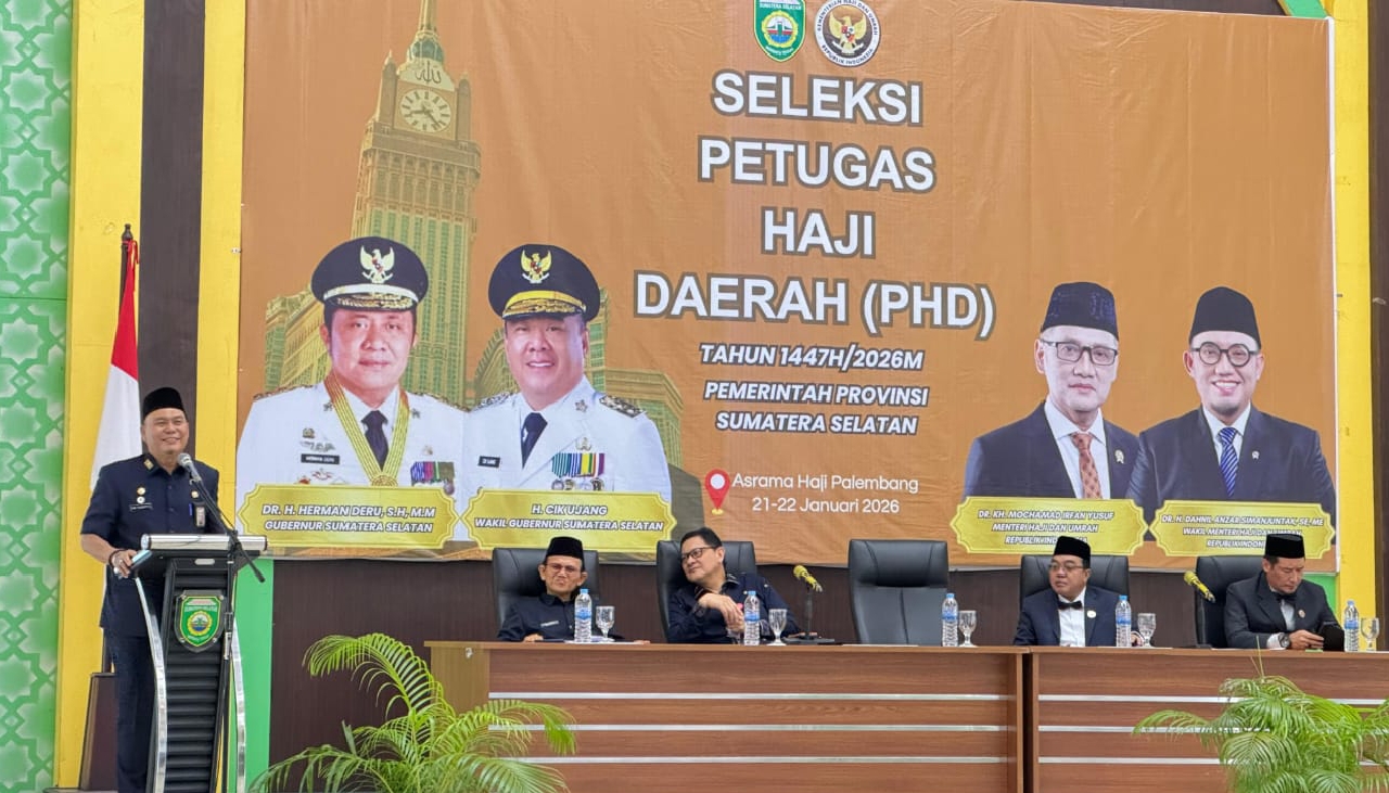 Sriwijayamedia.com- Kepala Biro (Karo) Kesejahteraan Rakyat (Kesra) Sekretariat Daerah (Setda) Provinsi Sumsel Dr Drs H Sunarto, M.Si., membuka secara langsung seleksi Petugas Haji Daerah (PHD) Tahun 1447 Hijriah/2026 Masehi, di Asrama Haji Palembang, Kamis (22/01/2026).