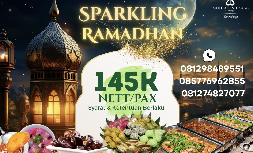 Sriwijayamedia.com- Dalam rangka bulan suci Ramadhan 1447 Hijriah, Hotel Peninsula Palembang yang berada di Jalan H Abdul Rozak No 168 Kelurahan 2 Ilir, Kecamatan Ilir Timur 2 Kota Palembang menghadirkan menu paket Ramadhan 2026 bertajuk “Sparkling Ramadhan 2026”.