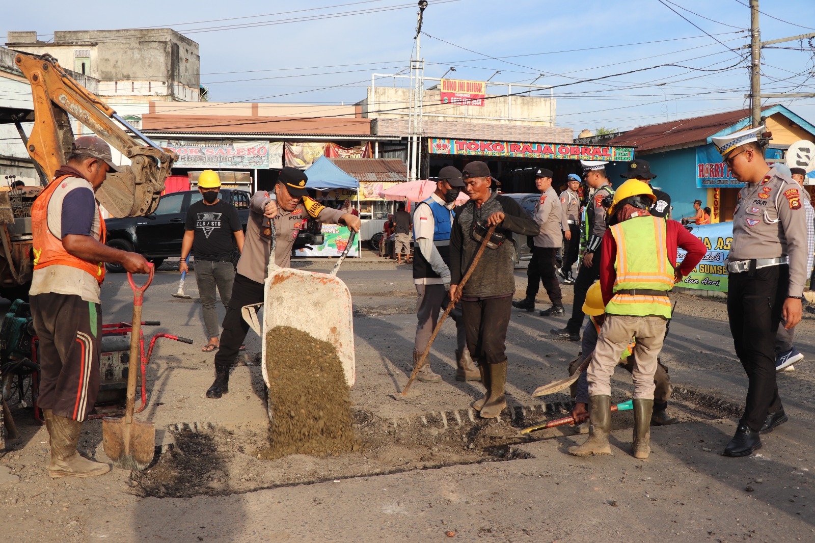 Sukseskan Program Belida Polda Sumsel dan Dukung Indonesia Asri, Polres Mura Tambal Jalan Berlubang