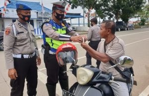 Cegah Penyebaran Covid-19, Polres Kukar Bagikan Masker ke Pengguna Jalan