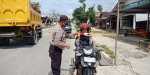 HUT RI 75 Tahun, Polsek Gunung Meriah Bagikan Masker ke Pengguna Jalan